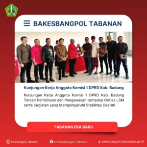 Kunjungan Kerja Anggota Komisi 1 DPRD Kab. Badung Terkait Pembinaan dan Pengawasan terhadap Ormas LSM serta Kegiatan yang Mempengaruhi Stabilitas Daerah.